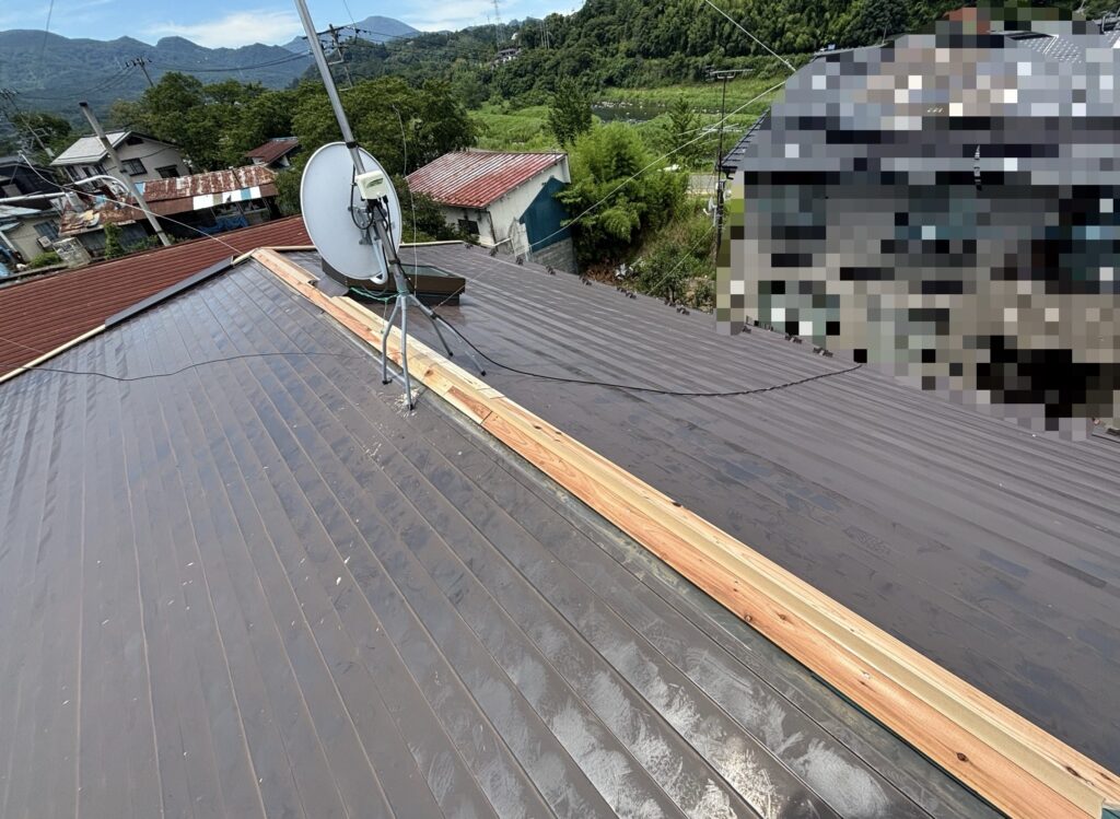 今回、一部が棟包み板金納めになっておりましたが、屋根材の上に直接木下地がつけてありました。