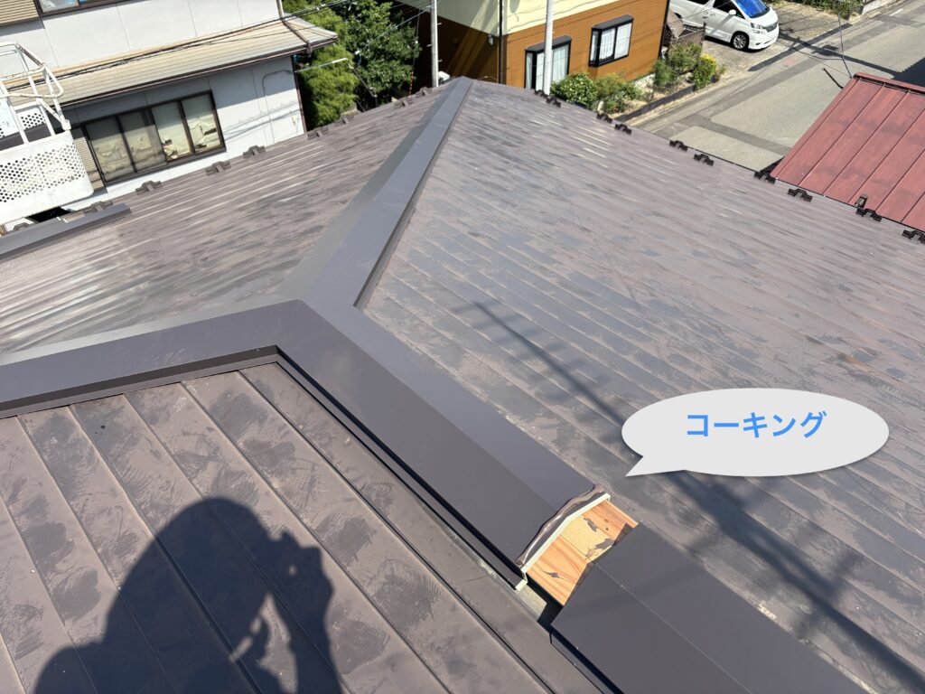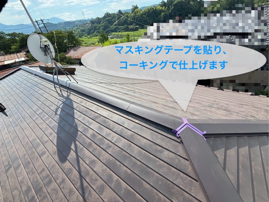 全ての棟包み板金を取付け終わったら上からもコーキングを塗り仕上げとなります!