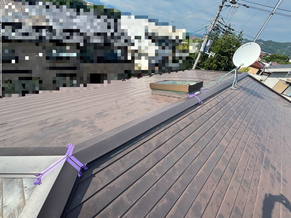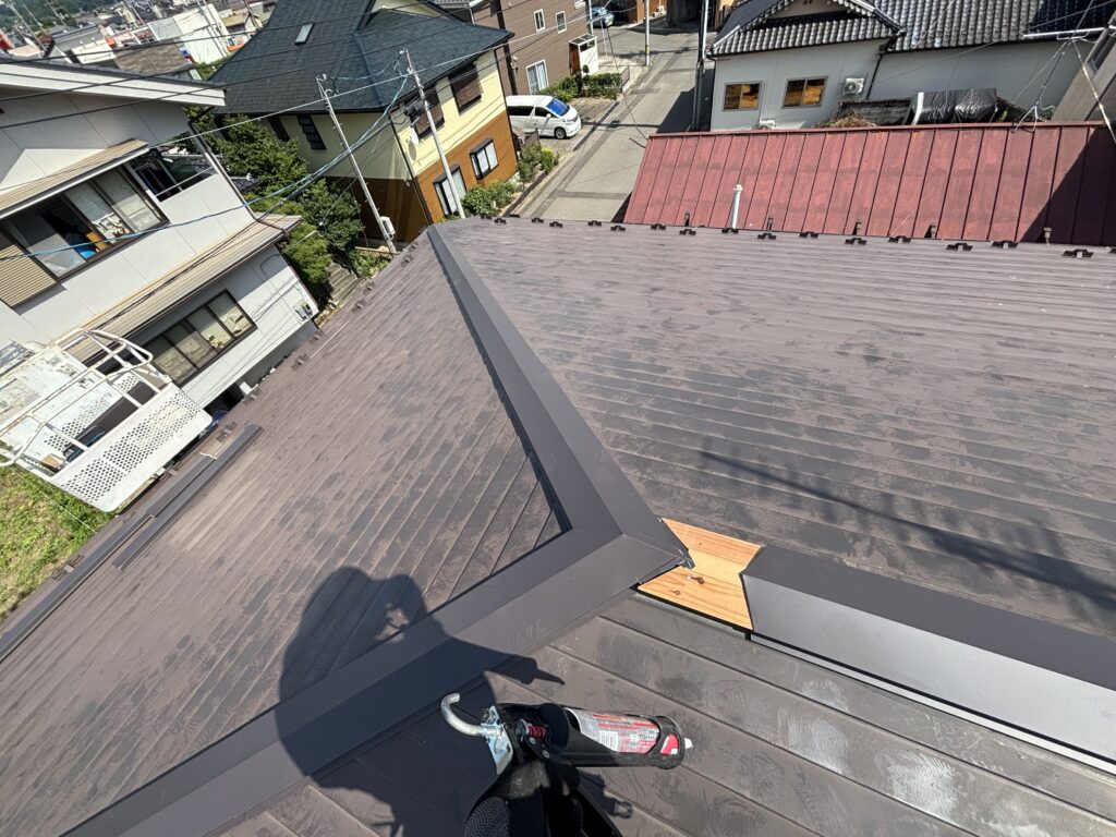 この上から追加で木下地を打ち、棟包み板金を取り付けます。