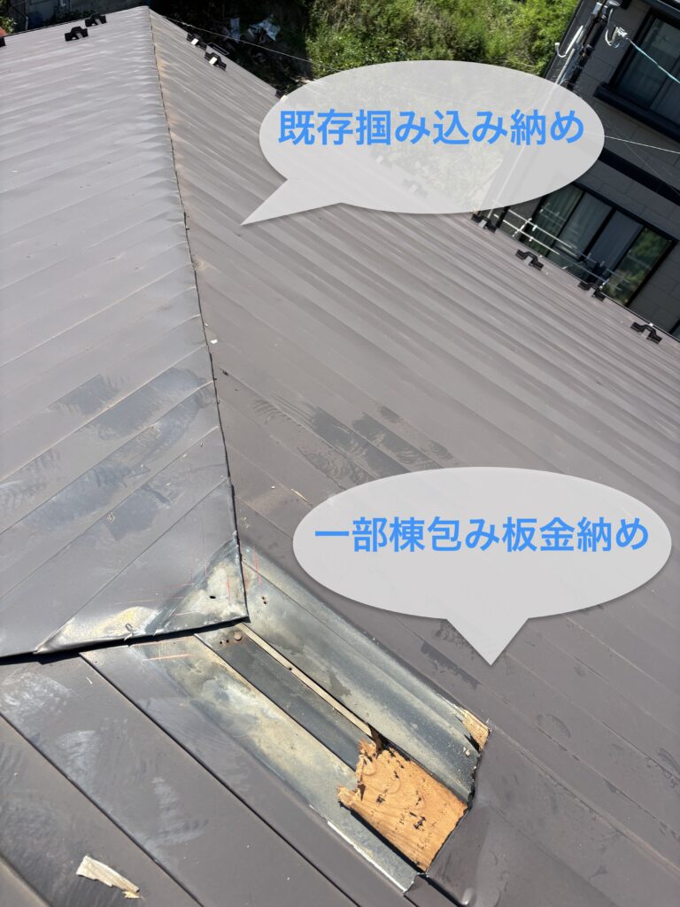掴み込み納めは直接、雨風が当たるので、掴み込みの部分から雨水が侵入しやすく、時間が経ち下葺き材が劣化するとそのまま雨漏りの原因になる事が多いからです。