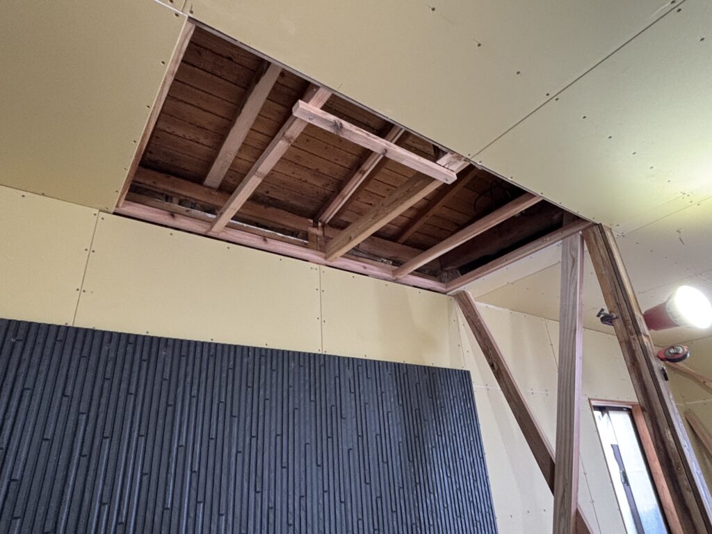 耐火性能を上げる為に空間を開けてさらに下地を組んでいきます。