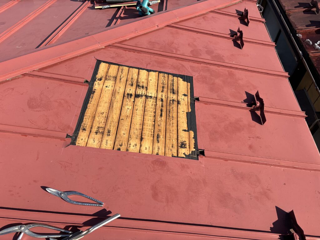 雨水の侵入を防ぐ為に屋根材を立ち上げます。