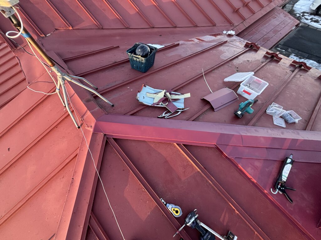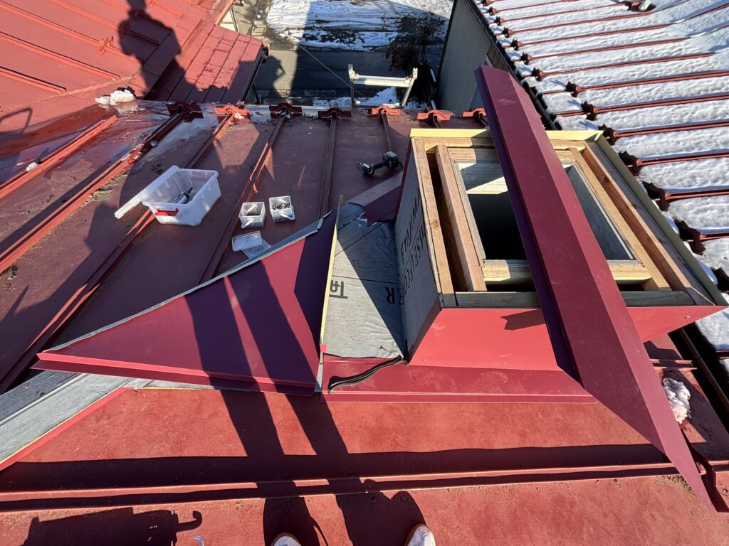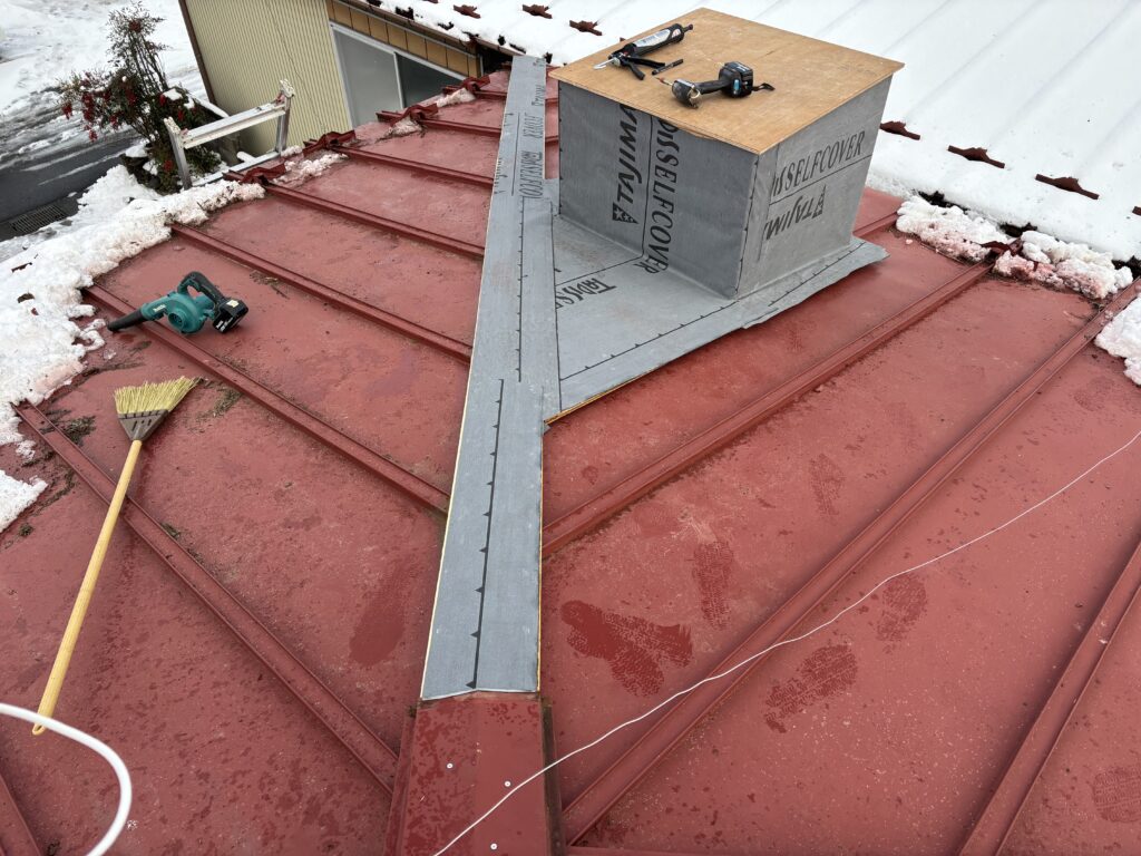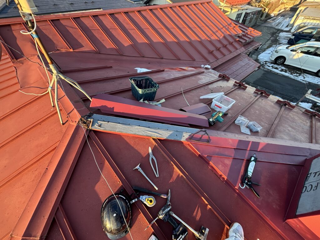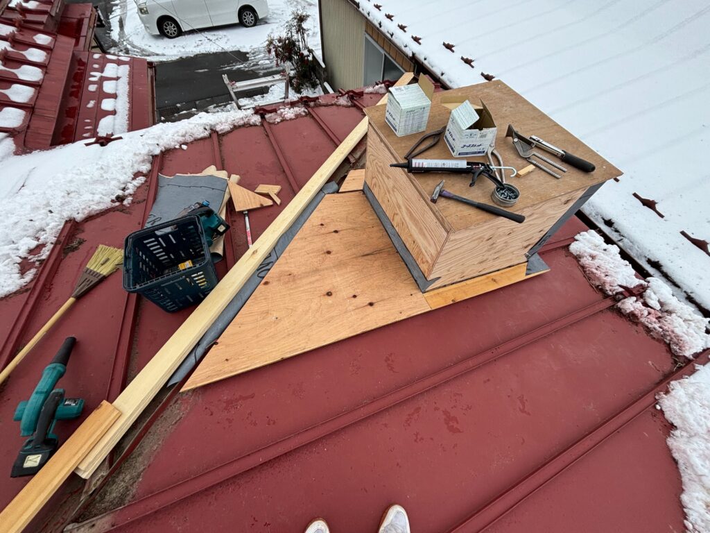 棟板金下地を撤去後、さらに必要な下地を取付けていきます。