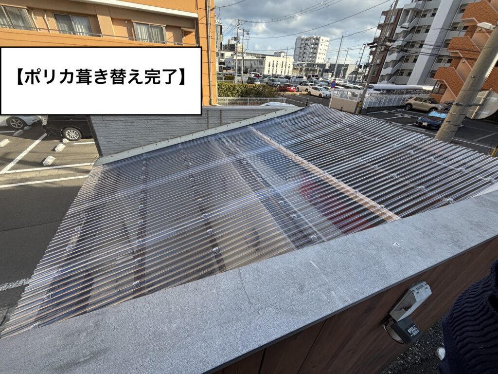 今回は経年劣化したポリカ屋根の葺き替え工事の施工事例になります。