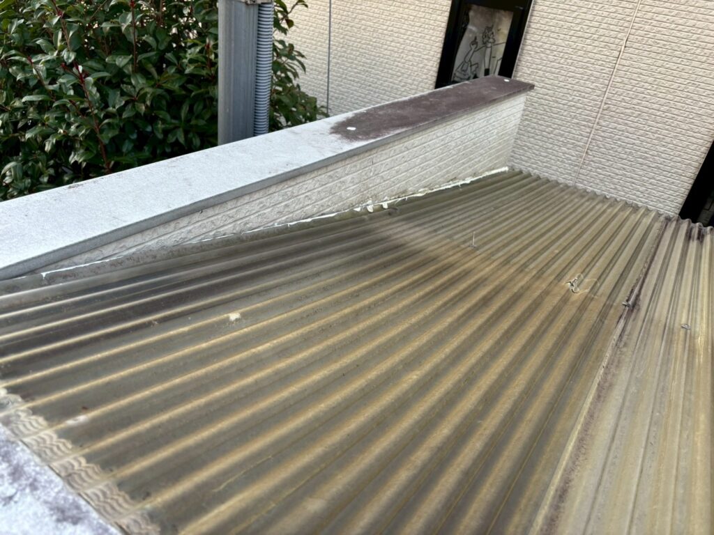 特に今回のように10年以上経過しているポリカ屋根は、素材が硬化してしまい、ちょっとした衝撃でも割れやすくなっていることがあります。