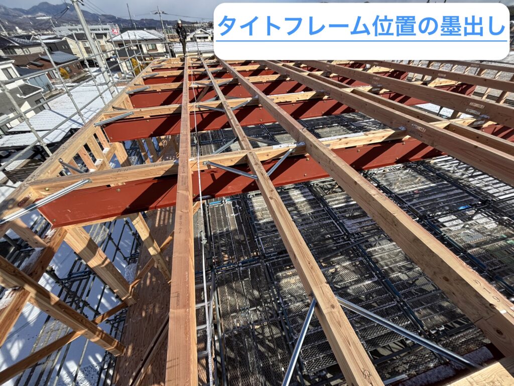 まずはタイトフレームの取付け位置の墨出しです!