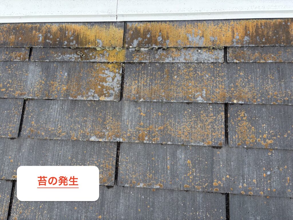 【富谷市】スレート屋根のひび割れを現場調査|屋根点検にてひび割れ・苔の発生を確認しました