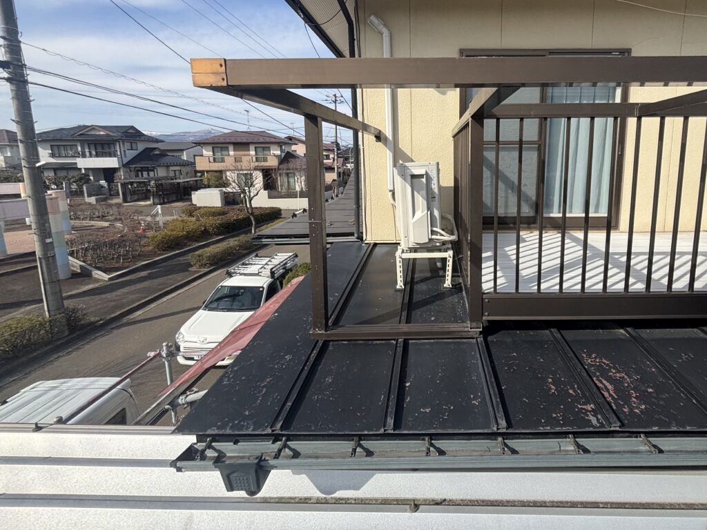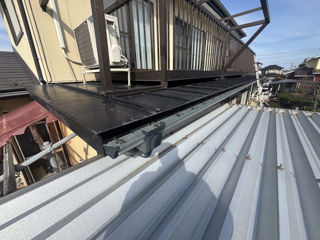 ベランダ下の板金屋根(下屋根)部分です。