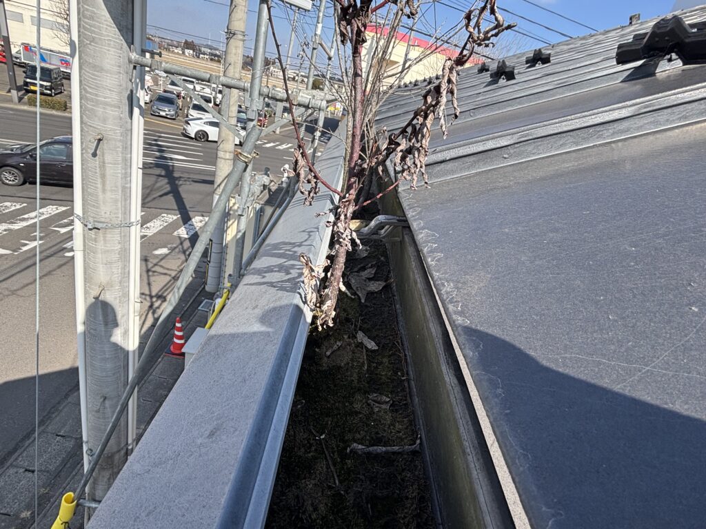 雨樋の中から枝が生えている状態でした