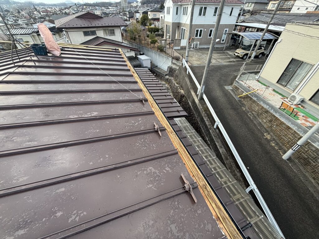 既存の瓦棒屋根の上から新しい屋根材を被せていきます。