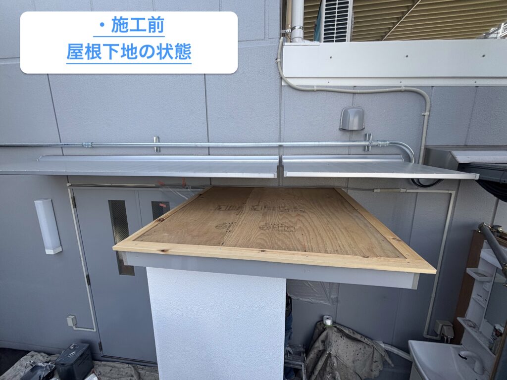 【仙台市宮城野区の屋根工事】会社建物の下屋(庇屋根)板金工事を行いました。